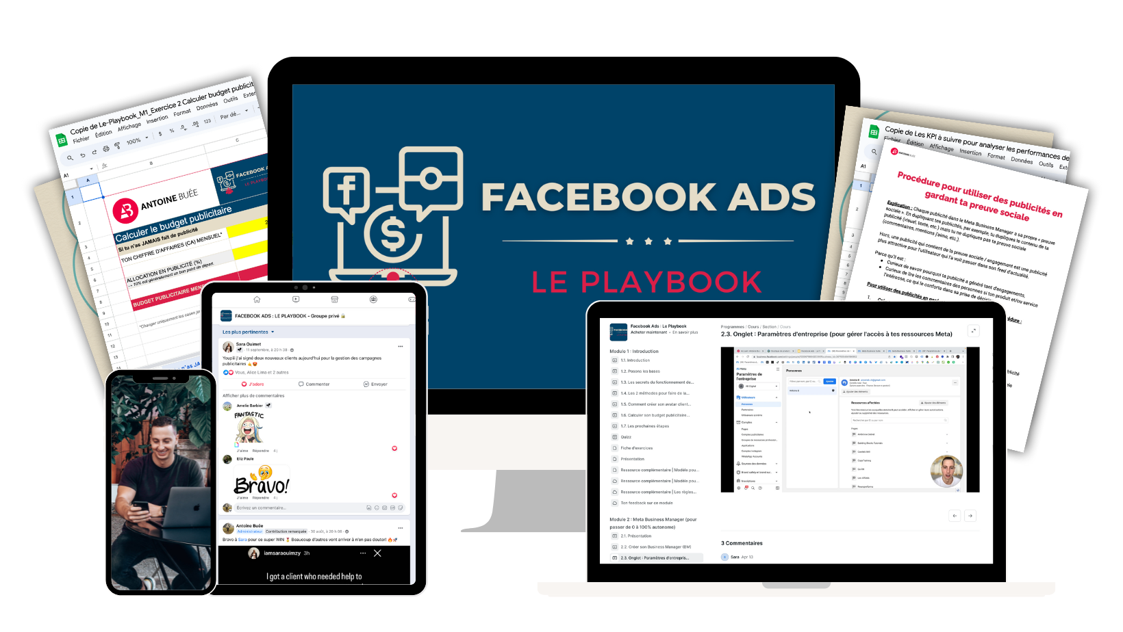 La méthode de A à Z pour lancer des publicités Facebook rentables, attirer de nouveaux clients en continu et fidéliser ton audience, même si tu débutes de zéro.