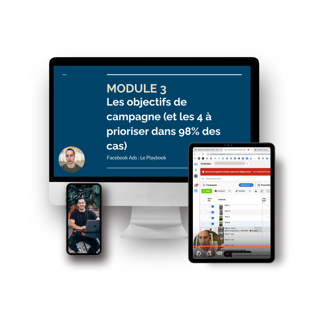 La méthode de A à Z pour lancer des publicités Facebook rentables, attirer de nouveaux clients en continu et fidéliser ton audience, même si tu débutes de zéro.